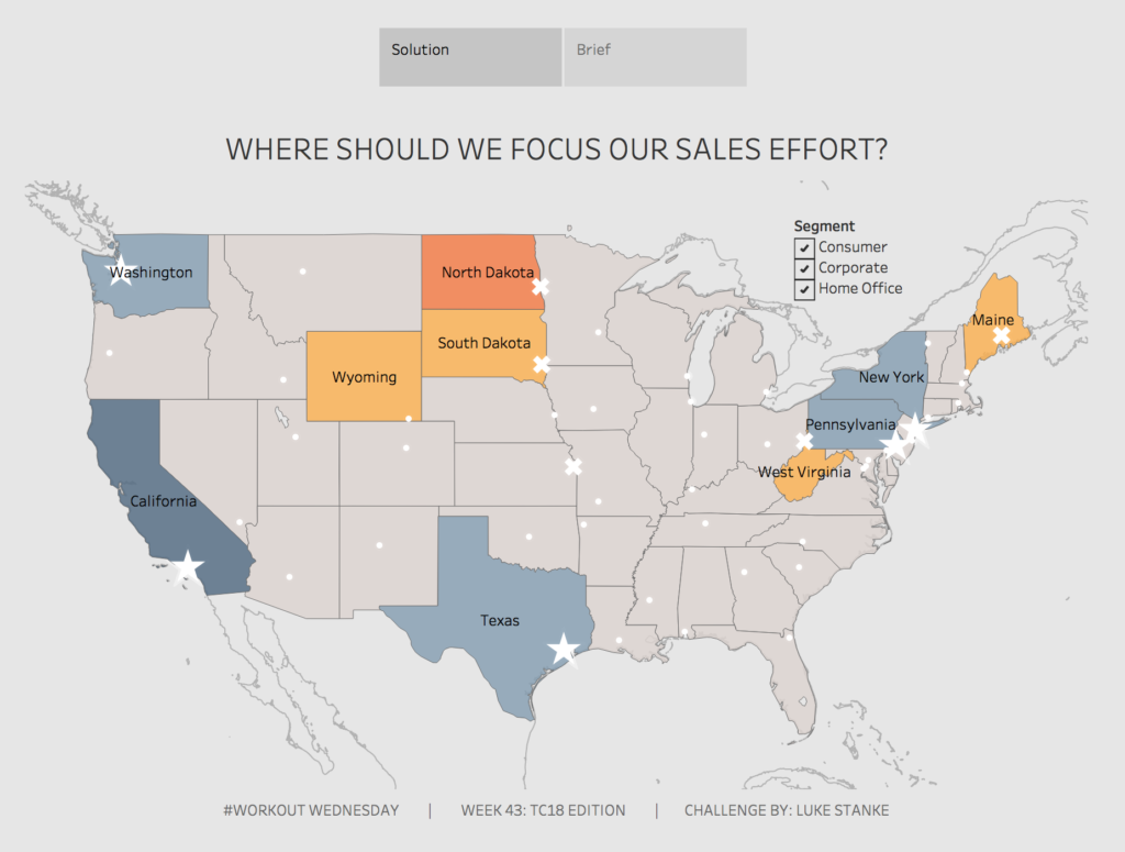 Heads up: we are at Tableau Conference and we’ll be delayed on checking Twitter. Also Luke will attempt to live stream via Twitter. Challenge This week we take Workout Wednesday live at Tableau Conference. Click to view on Tableau Public Requirements Create a map and color the overall top, top 5, bottom, bottom 5 states […]