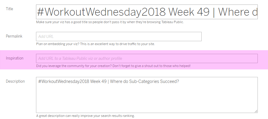 When you publish your solution on Tableau Public make sure to take the time and include a link to the original inspiration. Also include the hashtag #WOW2020 in your description to make it searchable!