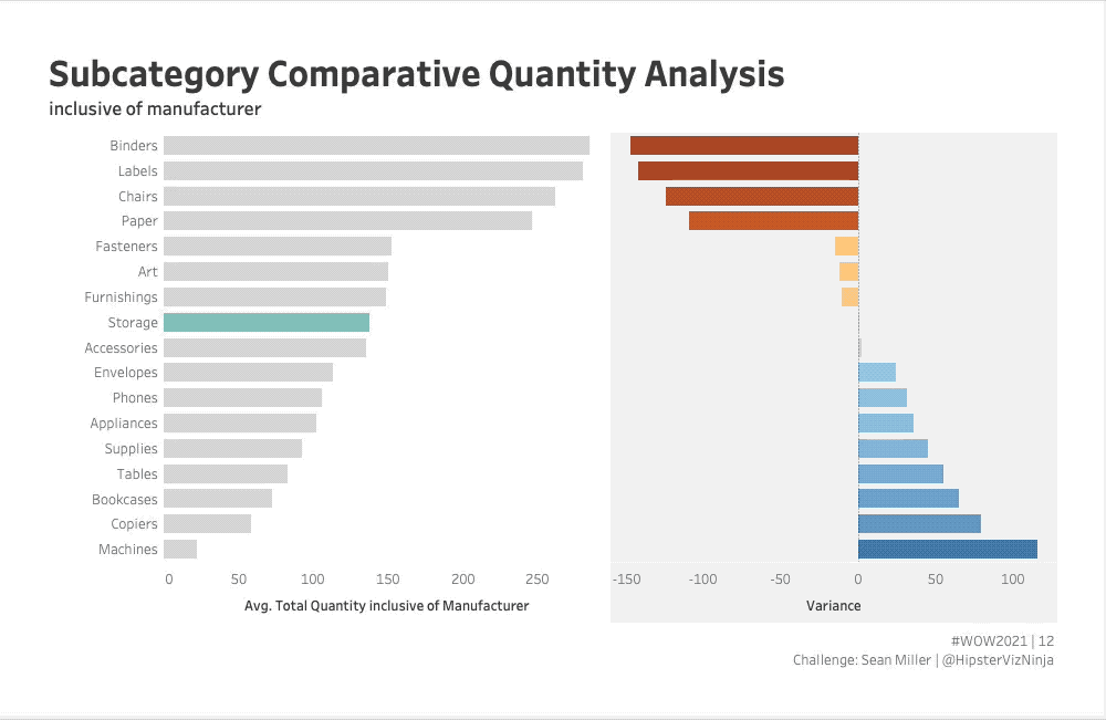 - Create a side-by-side bar chart by Subcategory