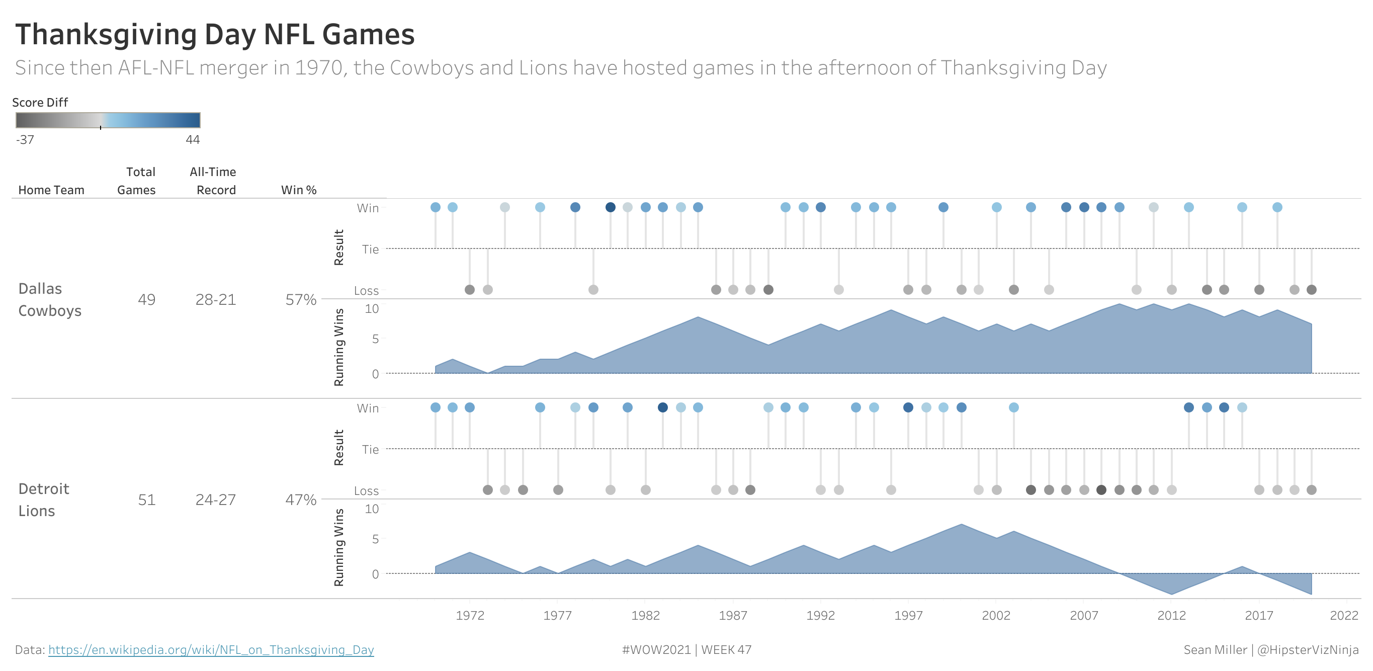 Happy Turkey day! This week is Thanksgiving in US and for many, it means honoring the long-standing tradition of watching two (2) NFL games during the day. Since 1970, the Dallas Cowboys and Detroit Lions have hosted an opponent on the afternoon of Thanksgiving Day.