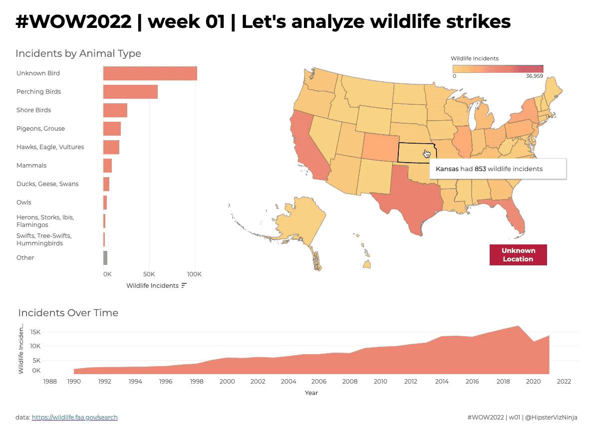 #WOW2022 | Week 01 | Let’s visualize wildlife strikes