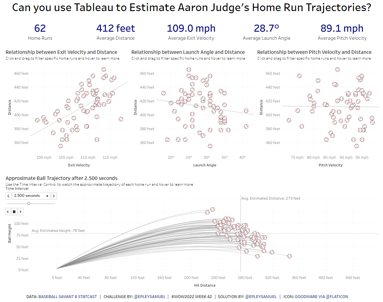 #WOW2022 | Week 42 | Can you use Tableau to estimate Aaron Judge’s home run trajectories?