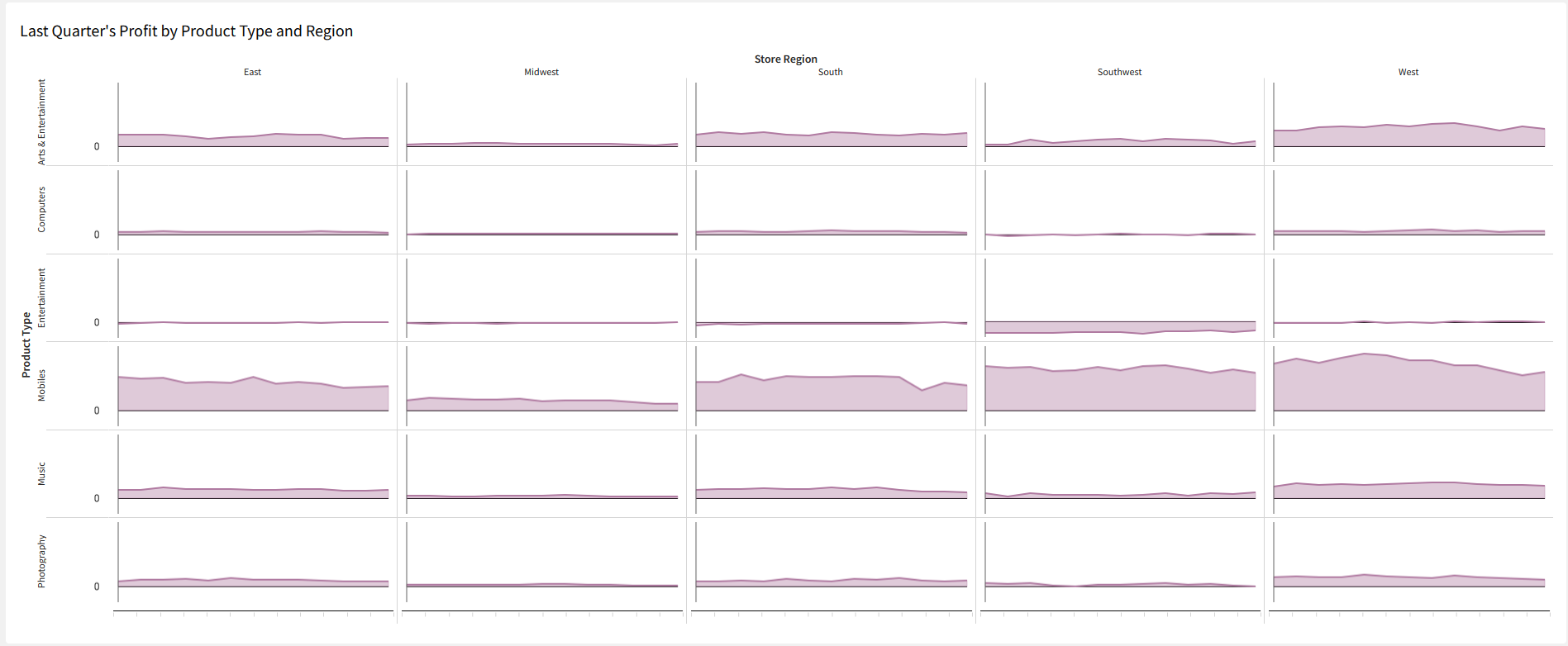 - Note: for an analysis of trends, we can also uncheck ‘Share Y-Axis’ to normalize our visualizaitons and remove some of the bias related to the size/number of stores in a region