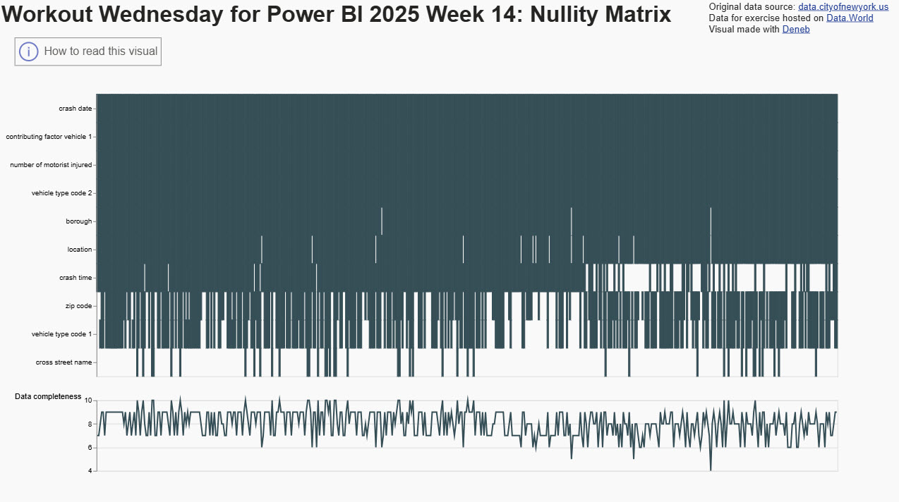 Latest Challenges in Power BI 2025 Week 52 | Power BI: Happy Holidays Custom VisualIntermediate 2025 Week 51 | Power BI: Holiday Traffic: Who Came, Who Left 🎄 Custom VisualIntermediate 2025 Week 50 | Power BI: First Snowfall Scatterplot Beginner 2025 Week 49 | Power BI: Join the last QuickViz Challenge Intermediate 2025 Week 48 | Power BI: Build a stream graph Beginner 2025 Week 47 | Power BI: Join a(nother) QuickViz Challenge Beginner 2025 Week 46 | Power BI: Join a QuickViz Challenge Dynamic annotationIntermediate 2025 Week 45 | Power BI: Create dynamic annotations AdvancedCustom Visual 2025 Week 44 | Power BI: Utilising HTML to create actual scale charts bar chartIntermediate 2025 Week 43 | Turning Numbers into a Story of Movement Intermediate 2025 Week 42 | Power BI: Info page for reports ℹ️ Intermediate 2025 Week 41 | Power BI: eCommerce metrics bar-in-bar visualizations Beginner 2025 Week 40 | Power BI: Announcing the DataViz World Champion Beginner 2025 Week 37 | Power BI: Adding a baseline bar in a bar chart Custom Visual 2025 Week 36 | Power BI: Area between timeseries smoothing filtersIntermediate 2025 Week 35 | Grouped Field Parameters in a Matrix Beginner 2025 Week 34 | Build a Dynamic TopN report DenebIntermediate 2025 Week 33 | Create a Circular Heatmap with Deneb Intermediate 2025 Week 32 | Build a Waffle Chart using Core Visuals Beginner 2025 Week 31 | Recreate a winning #PBI10 entry Intermediate 2025 Week 30 | Power BI: Bar chart with built-in scales ???? BeginnerIntermediate 2025 Week 29 | Next level tooltip Beginner 2025 Week 28 | Join the #PBI10 Dataviz Contest Beginner 2025 Week 27 | Recreate This Wealth Infographic Beginner 2025 Week 26 | Power BI: Progress Bars Beginner Week 25 | Power BI: Segments and Scatterplot Beginner 2025 Week 24 | Power BI: Core Visuals Box Plot DenebIntermediate 2025 Week 23 | Power BI: Highlight on Hover with Deneb Beginner 2025 Week 22 | Power BI: Create a lollipop chart Custom Visual 2025 Week 21 | Power BI: Scatterplot / Timeseries Smoothing filtersIntermediate 2025 Week 20 | Year-over-Year Selected Metric Trends BeginnerIntermediate 2025 Week 19 | Dumbbell chart plus DenebIntermediate 2025 Week 18 | Power BI: Create a skyline chart BeginnerIntermediate 2025 Week 17 | Power BI: Create a control chart Intermediate 2025 Week 16 | Power BI: Cards – NEXT Level | with emojis and variances label announcement 2025 Week 15 | Power BI: The 2025 DataViz World Champion has been crowned! DenebIntermediate 2025 Week 14 | Power BI: Create a nullity matrix Beginner Week 13 | Power BI: Segments and Sanky 2025 Week 12 | Power BI: Animated Progress Bar with Edward Charles Intermediate 2025 Week 11 | Power BI: Can you create a (story) arc diagram with core visuals? Load More