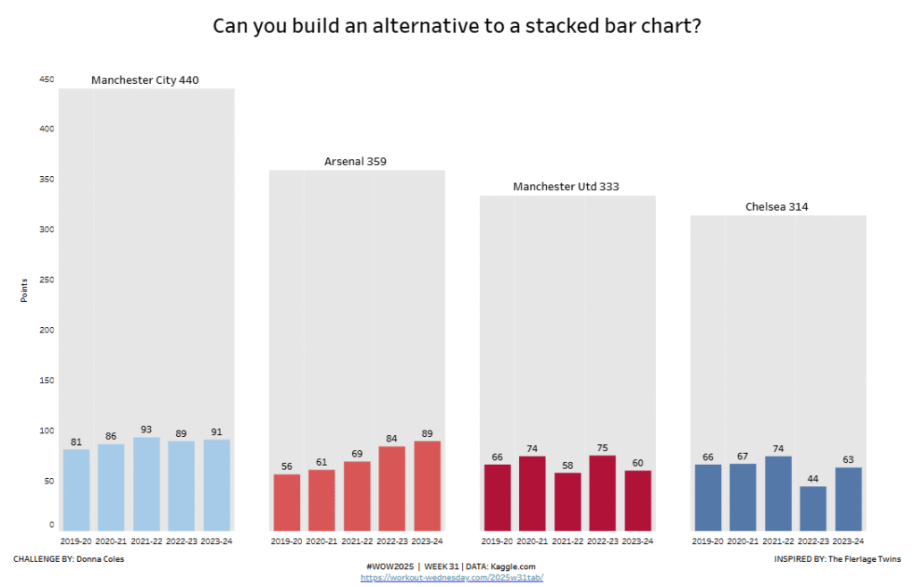#WOW2025 | Week 31 | Can you build an alternative to a stacked bar chart? Read More »